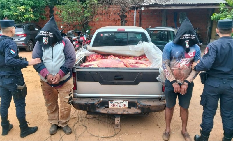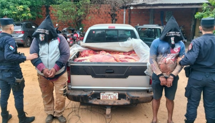 Los aprehendidos fueron identificados como Ceferino González Zarate (39), domiciliado en Santa Rosa de Concepción, y Alberto Fernández Rojas (48), domiciliado en San Ramón, distrito de Paso Horqueta. Ambos se encontraban a bordo de una camioneta, en cuyo interior se hallaron aproximadamente 660 kilos de carne vacuna sin documentación de origen.